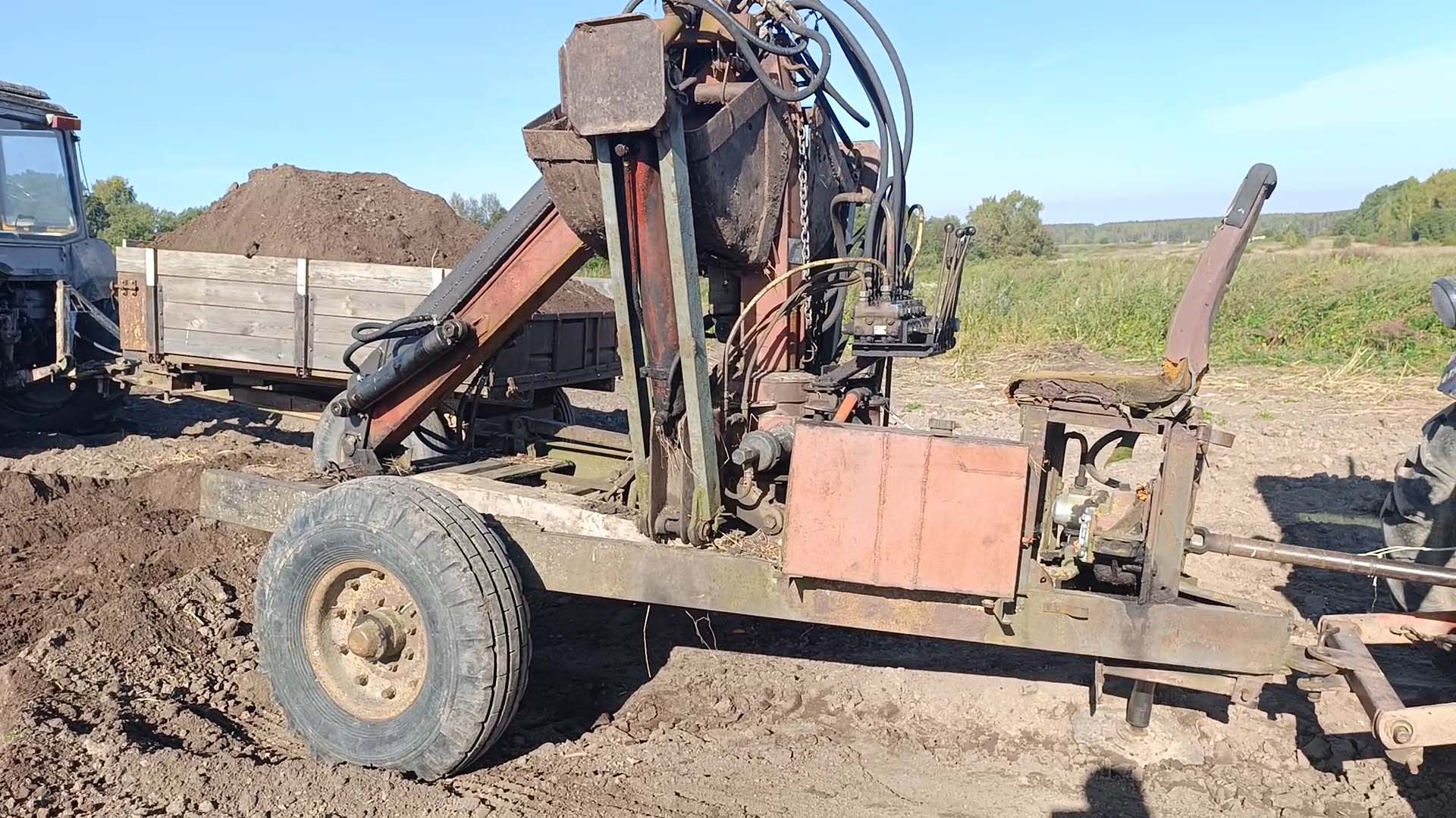 Первые модели представляли собой прицепные тележки с поворотной платформой, грузовую стрелу и лебёдку, когтевой грейфер оригинальной конструкции, ручной механизм поворота платформы с зубчатой передачей и привод от вала отбора мощности трактора. Эти машины поставлялись в виде наборов «сделай сам», которые собирались непосредственно в хозяйствах.